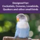 Breed Size: Cockatiels, conures, lovebirds, Quakers, and other small birds