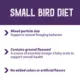 DESCRIPTION Mazuri Small Bird Diet is a complete bird food for small psittacines and passerines. This nutritionally complete small bird food, formulated in multi-sized particles, can be used as the primary diet for nonbreeding birds.