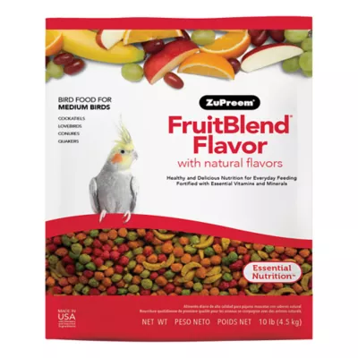 ZuPreem FruitBlend Flavor with natural flavors is a bird food that helps provide healthy and delicious nutrition for everyday feeding for your Cockatiels, Quakers, Lovebirds, Small Conures or any other medium birds that prefer this medium pellet size. Feed the FruitBlend Flavor products daily to provide your bird with the essential nutrients for a healthy and balanced diet.