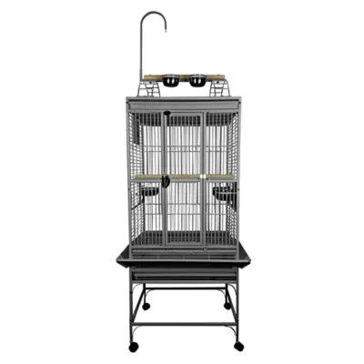 This A&E Cage Company Play Top Bird Cage is a spacious and well-appointed home for your pet bird. This great-looking platinum cage features a powder-coated finish, a large front door for easy access and removable parts that make keeping it clean a breeze.