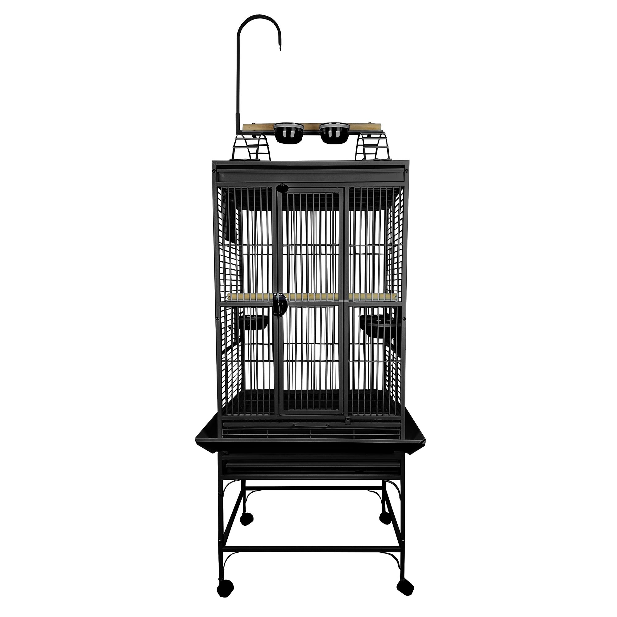 A&E Cage Open Top Victorian Cage provides your pet with a comfortable and roomy living space. This owner friendly open top series by A&E, features a large, bird proof front door for easy access with feeder door locks. The bird cage also opens into a play top, is made with durable wrought-iron and baked in a non-toxic, powder-coated finish for you and your pets safety.