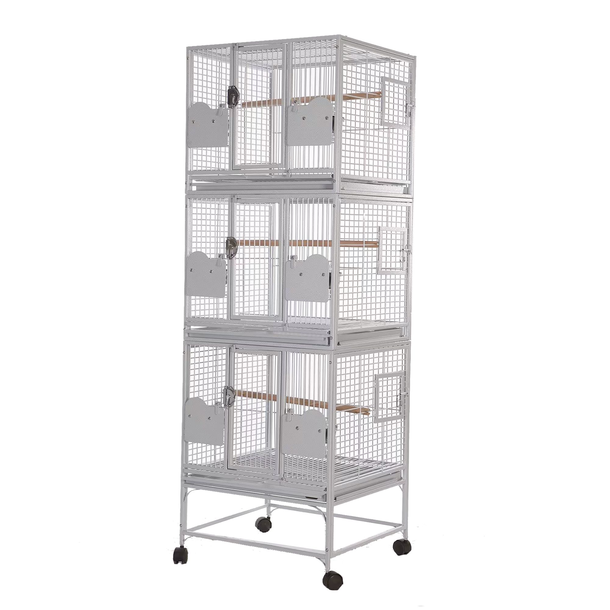 doors, and 3 stainless steel feeder cups with 2 perches
