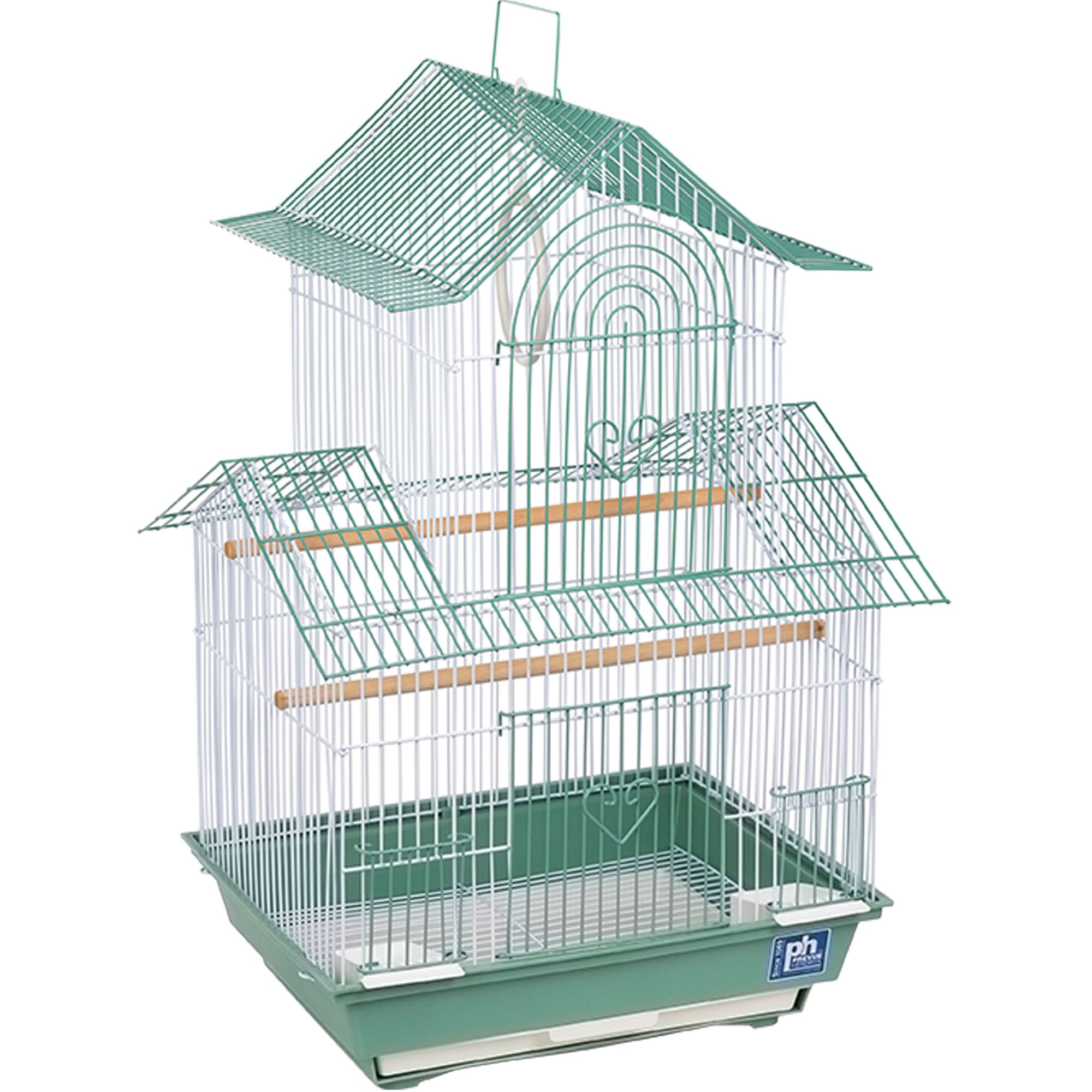 Description: Prevue Pet Products Clean Life Bird Cage Green & White SP850G⁄W has been designed with form, functionality and affordability in mind. This remarkable cage features an integrated seed guard to cut down on mess and scattered debris, while the lower cup placement and an innovative removable tray help your bird thrive in a cleaner living environment. Elevated cage mesh also helps prevent debris from getting stuck at catch points along the bottom of the cage. Perfect for small to medium sized birds, two plastic cups and two perches are included. Our Clean Life Cage measures 17.5" long, 17.5" wide and 24" high with 1⁄2" wire spacing. Base measures 22" Long and 22" Wide.