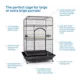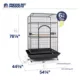 Includes: Three stainless steel food/water bowls, one hardwood perch, seed guard set, pull out grille, removable tray, casters