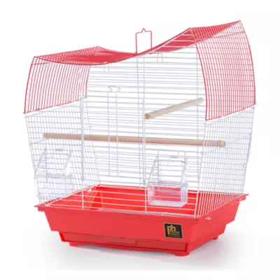 Prevue Pet Products South Beach Dome Top Bird Cage Coral SP50110 is a visually striking cage for your small bird. Full of owner, and bird, friendly features our dome top cage has been expertly engineered and comes complete with two 2 oz. hooded plastic exterior food & water cups held in place with spring loaded hinged doors, two wood perches 1/2 inch in diameter, a bottom grille plus a color coordinated pull-out tray and base. 3/8 inch wire spacing is suitable for small birds such as finches, canaries and budgies. All rail wires are 14 gauge and all fill wires are 16 gauge. The large front door measures 5 1/4 inch long and 7 1/2 inch high. Roomy and unique wave top roofline provides additional space for hanging toys. Finished with a durable and non-toxic powder coating, Prevue cages undergo independent lab testing and conform to the highest levels of pet safety.