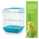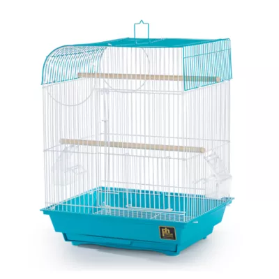 Prevue Pet Products South Beach Flat Top Bird Cage Teal SP50061 is a visually striking cage for your small bird. Full of owner, and bird, friendly features our flat top cage has been expertly engineered in the USA and comes complete with two 2 oz. hooded plastic exterior food & water cups held in place with spring loaded hinged doors, Two wood perches 1/2 in in diameter and 14 in long, a bottom grille plus a color coordinated pull-out tray and base. 3/8 inch wire spacing is suitable for small birds such as finches, canaries and budgies. All rail wires are 14 gauge and all fill wires are 16 gauge. The large front door measures inch long and 9 7/8 inch high and contains a smaller, 3 7/8 inch long and 4 1/2 inch high sliding door to give you more controlled access to the cage interior. Finished with a durable and non-toxic powder coating, Prevue cages undergo independent lab testing and conform to the highest levels of pet safety.