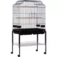 Description and Overview: Prevue Pet Products Universal Bird Home with Stand F090 is an attractive large cage that is appropriate for a wide range of birds. Its" superior construction, heavier gauge wire and versatile 1/2" wire spacing make our Universal Bird Home an ideal flight cage for multiple smaller birds, or a spacious home for one or two cockatiel or small parrot. The cage measures over 3-ft tall and nearly 3-ft across and has a landing style door, 4 plastic cups and 3 wood perches. The deep base features a removable grille and pull-out, two-tray system for easier cleaning. The cage stand with rolling casters and an integrated storage shelf is included. This all black cage is substantial and has a classic look and feel. Measures 32 7/8" Long, 18 1/4" Wide, 37 7/8" High, with 1/2" wire spacing. On stand measures 33 3/4" Long, 19 3/4" Wide, 60 7/8" High.