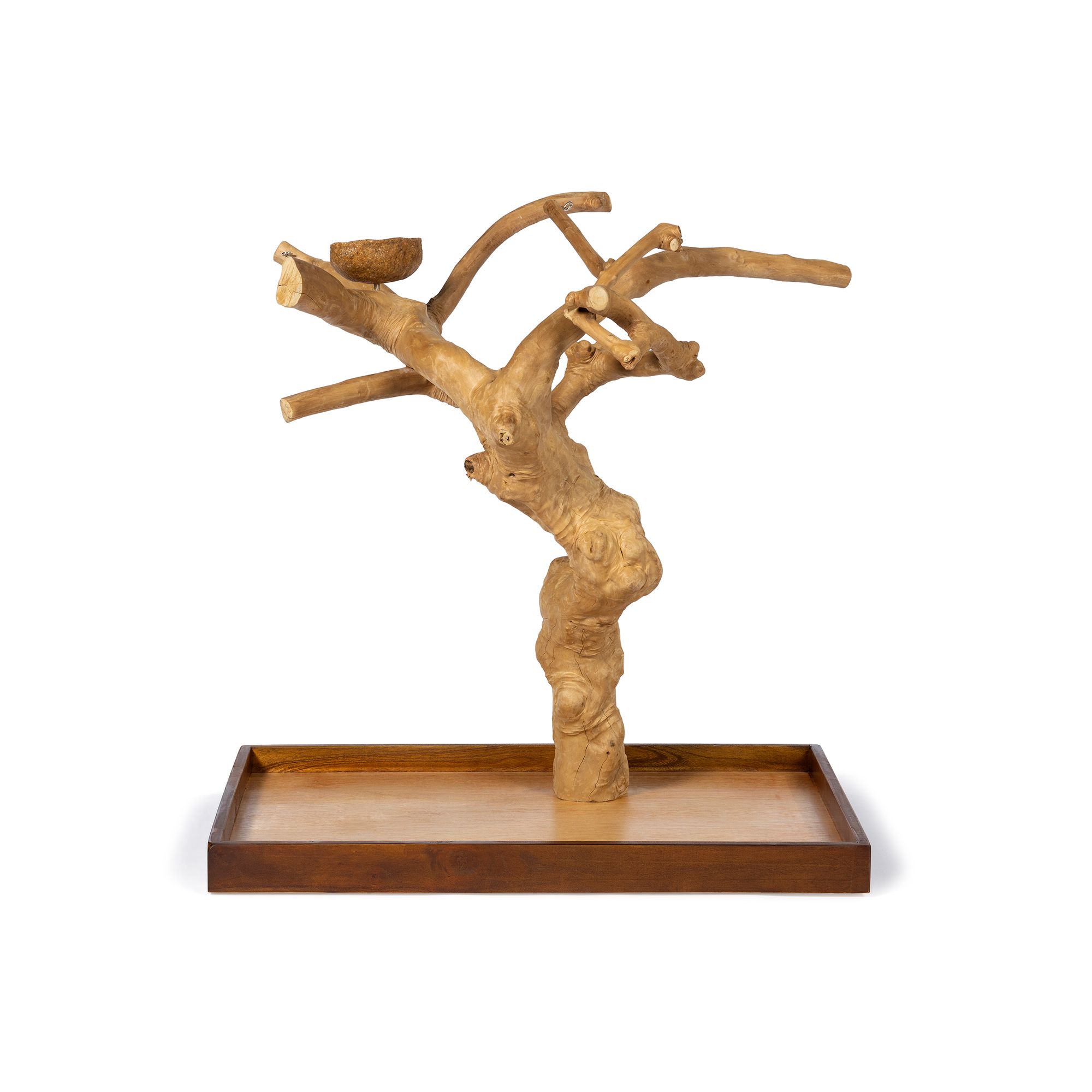 Prevue Pet Products Coffeawood Java Tree Minis Small Table Top Playstand 22633 is a sustainably harvested, 100% natural wood product from the Coffeawood/Java tree. Allow your bird to play and explore as it would in the forest by climbing and perching among the gnarled branches. Each Minis tabletop playstand has multiple levels and is a unique and one-of-a-kind product, no two trees are alike! With a smaller branch diameter, our Small Model is perfect for smaller birds like finch, canary, love bird and budgie. Coffeawood trees are a sustainable resource from coffee/java trees that are no longer productive. Photos are representative of the tree style, but are not the actual trees to be purchased. All Coffeawood/Java Trees are natural and unique. Variations in actual items purchased should be expected. Natural materials have natural variations, any minor cracks, natural wood folds and other variations do not constitute defects. Minor assembly required, attachthe trunk to the base, using the outline as a guide. Do not tighten food/water bowls all the way down to the branches.