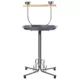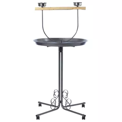 The T-Stand features a deep 21.75" diameter catch pan for reduced scatter a 1.5" diameter all natural wood perch and stainless steel food and water cups. The stand also features non-toxic premium powder coated finishing and EZ glide casters for easy mobility. The durable metal stand has a 25" diameter base for added stability. Ideal for parakeets, cockatiels, conures, amazons, African grays and other small and medium companion birds.