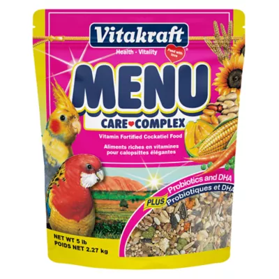 Vitakraft Menu Cockatiel Food contains a balance of nutrients especially suited for cockatiels. The high bio-availability of ingredients means that birds get the nutrients they need in a form that is easy to digest, to help keep them healthy, happy, and playful.