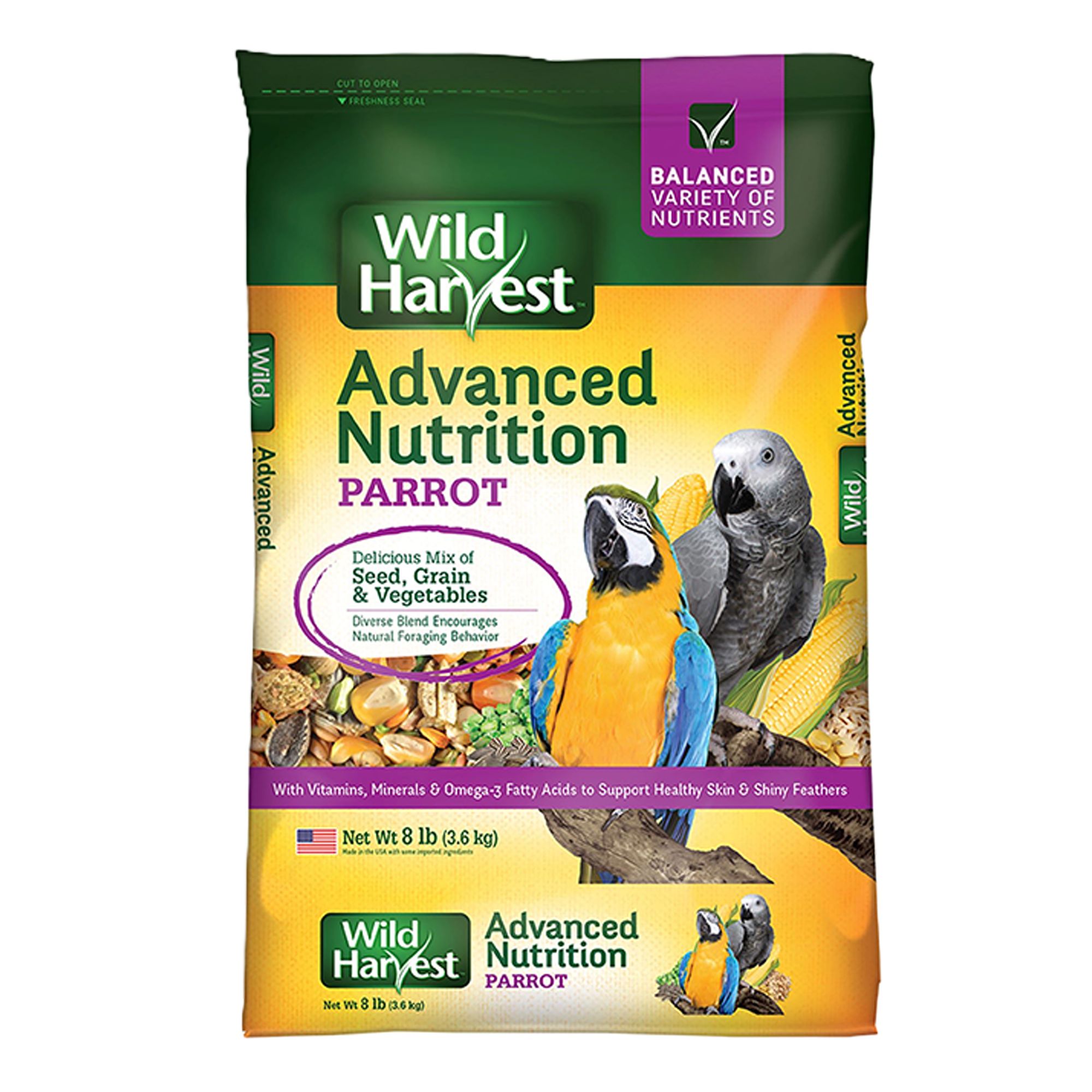 COCKATIEL FOOD: Large variety of seeds, grains and vegetables in every bowl to provide the balanced variety of nutrients that cockatielsneed with great taste they'll love. ADVANCED NUTRITION: Contains vitamins, minerals and Omega–3 fatty acids to support healthy skin and shiny feathers. IMPORTANT VARIETY: Unique mix of millet, oat groats, safflower seeds, sunflower seeds, cracked corn, peanuts and more creates an irresistible blend to replicate diets found in a natural habitat and encourage foraging behaviors. DAILY DIET: Feed cockatiels 2 to 4 tablespoons daily per bird. WILD HARVEST BRAND: Offers a full assortment of nutritional and interactive engagement products.Product Brand & Name: Wild Harvest Advanced Nutrition Cockatiel Seed, Grain And Vegetable Mix, 8 Pounds