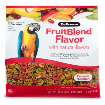 Recommended by leading veterinarians and bird breeders, Zupreem FruitBlend provides balanced nutrition fortified with important vitamins and minerals your parrot needs daily for excellent health. Add these fun, colorful, fruit-shaped nuggets to your parrot's diet for the variety and excitement your bird craves.