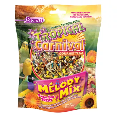 White Proso Millet, Oat Groats, Red Millet, Safflower Seeds, Sunflower Hearts & Chips (Dehulled Sunflower Seeds), Flaxseed, Canola Seed, Dried Cranberry Seed, Dried Papaya, Peanuts, Flaked Corn, Flaked Peas, Dried Carrots, Dried Coconut, Dried Ground Apple, Dried Ground Apricot, Dried Ground Carrot, Dried Ground Cherry, Dehydrated Ground Sweet Potato, Dried Coriander, Dried Parsley, Dried Rosemary, Dried Savory, Dried Marigold, Wheat Flour, Ground Corn, Ground Oats, Corn Gluten Meal, Dehulled Soybean Meal, RiceFlour, Potato Starch, Soybean Oil (preserved with Mixed Tocopherols), Dicalcium Phosphate, Brewers Dried Yeast, Calcium Carbonate, Fat Product (Source of DHA), Fructooligosaccharide, L-Lysine, Salt, Vitamin A Supplement, Vitamin D3 Supplement, Vitamin E Supplement, L-Ascorbyl-2-Polyphosphate (Source of Vitamin C), Thiamine Mononitrate, d-Calcium Pantothenate, Vitamin B12 Supplement, Choline Chloride, Manganese Proteinate, Iron Proteinate, DL-Methionine, Zinc Proteinate, Sodium Selenite, Dried Pediococcus acidilacticii Fermentation Product, Biotin, Folic Acid, Lecithin, Mixed Tocopherols (a preservative), Citric Acid (a preservative),Yucca Schidigera Extract, Rosemary Extract, Beta-Carotene, Natural and Artificial Orange Flavor, Colors Added (Titanium Dioxide, Red 40, Blue 1, Yellow 5 and Yellow 6, Turmeric, Paprika, Carmine), Sugar, Carnauba Wax, Confectionerâs Glaze Shellac, Dextrans, Natural and Artificial Vanilla Flavor, Sulfur Dioxide (a preservative)
