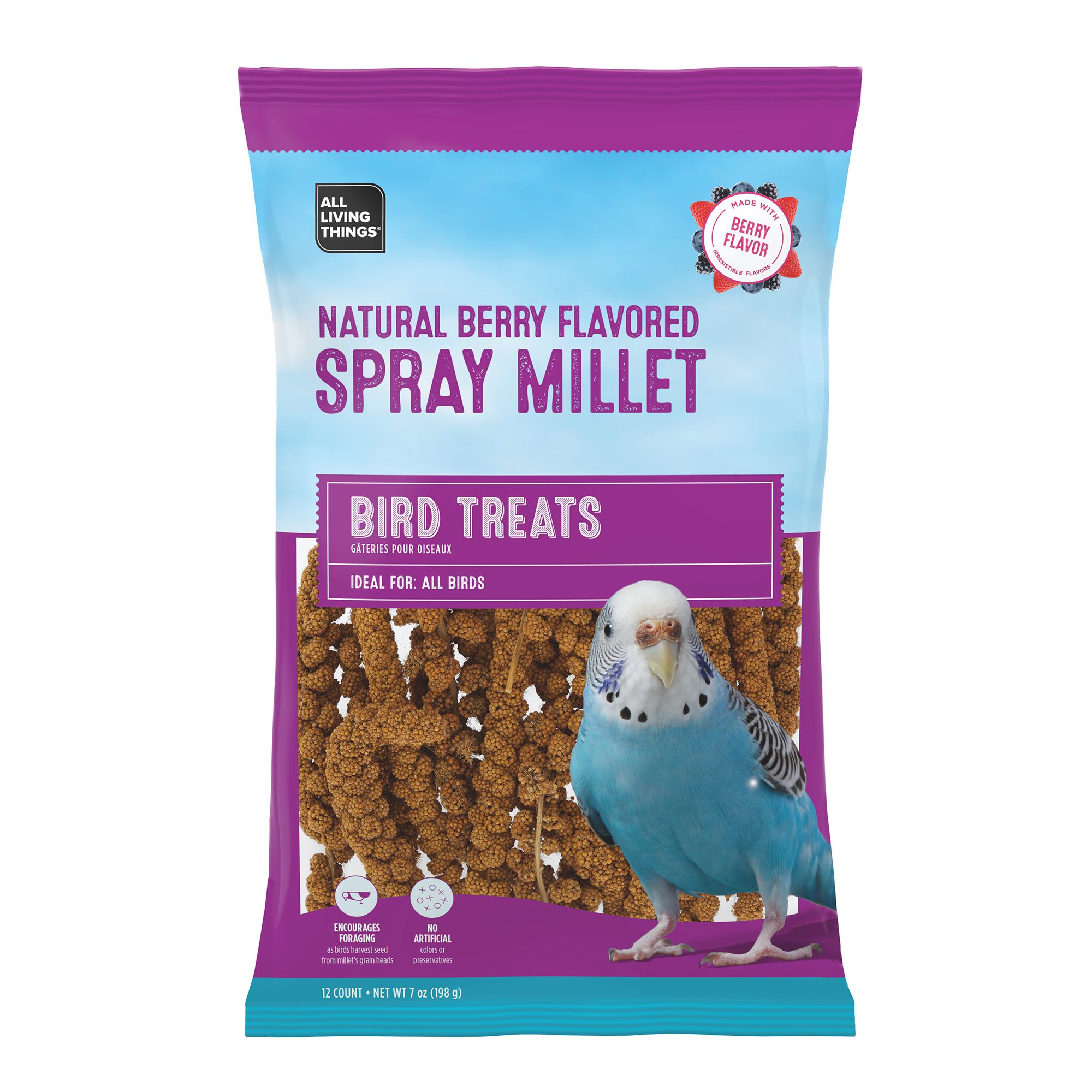 Kaytee Spray Millet is a favorite treat all birds enjoy. Millet comes naturally on a stem and is good for encouraging weaning and getting birds to eat. Spray Millet is great for fledglings, juveniles, and full-grown birds.