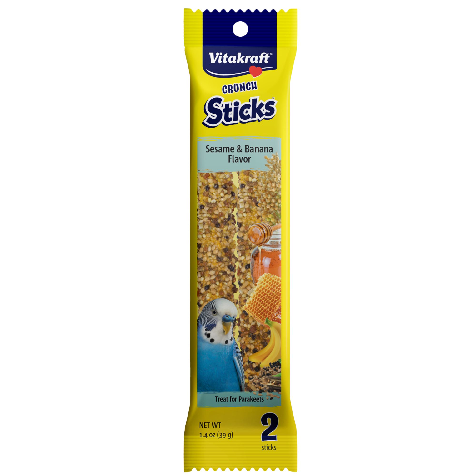 We put together three delicious parakeet Crunch Stick flavors for a delicious variety pack of crunchy goodness! Sticks included are Orange & Apricot, Egg & Honey, and Sesame & Banana. These triple-baked layered treat sticks are a great way to treat your favorite pet, with a natural wood chew center to promote chewing and beak health long after the treat part is gone.