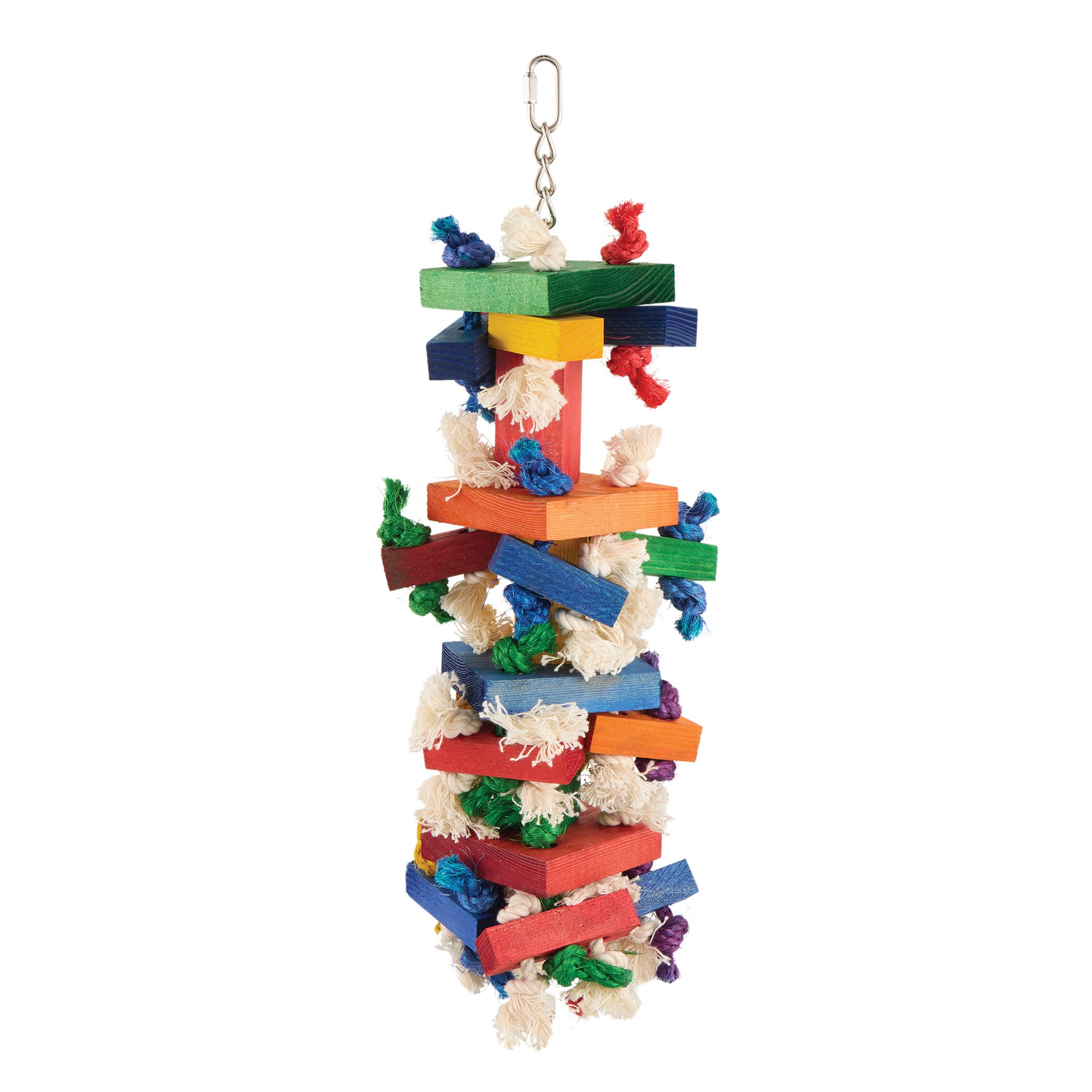Keep your bird entertained and engaged with this All Living Things® Knots & Blocks Preening Bird Toy. This fun and colorful toy was created for medium birds and offers the benefit of distracting your bird from plucking and over-grooming due to boredom. Exclusively at PetSmart.