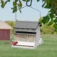 DESCRIPTION The Rustic Farmhouse White Farmhouse-Themed Squirrel Resistant Feeder is a rugged double-sided feeder to attract a wide array of birds to your yard, while spring-activated perches work to keep squirrels away. Holding up to 6 lbs. of birds favorite mixed seed, sunflower seeds, peanut halves or safflower, this large capacity requires less frequent filling.