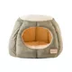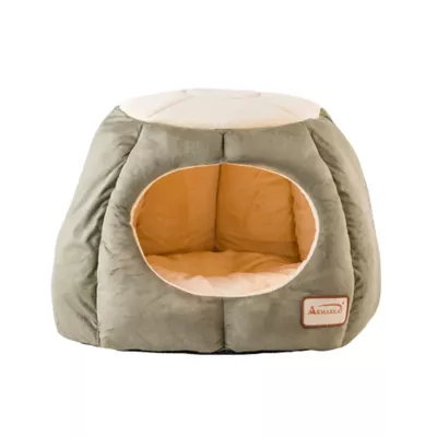 Spice up catnaps with the Armarkat Model C30HML/MH cat bed. This laurel green and beige cat bed is shaped like a hut to hug your pet, and features luxe velvet and buttery faux suede.