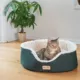 This Armarkat Pet Bed combines durable canvas and silky soft plush. Offered in an ivory and laurel green combination, this bed is suited for cats and extra small dogs. It is also filled with extra-thick, 100% polyfill for the maximum in comfort, and pet owners will appreciate that it has a waterproof and skid-free base with a c cover that is machine washable.