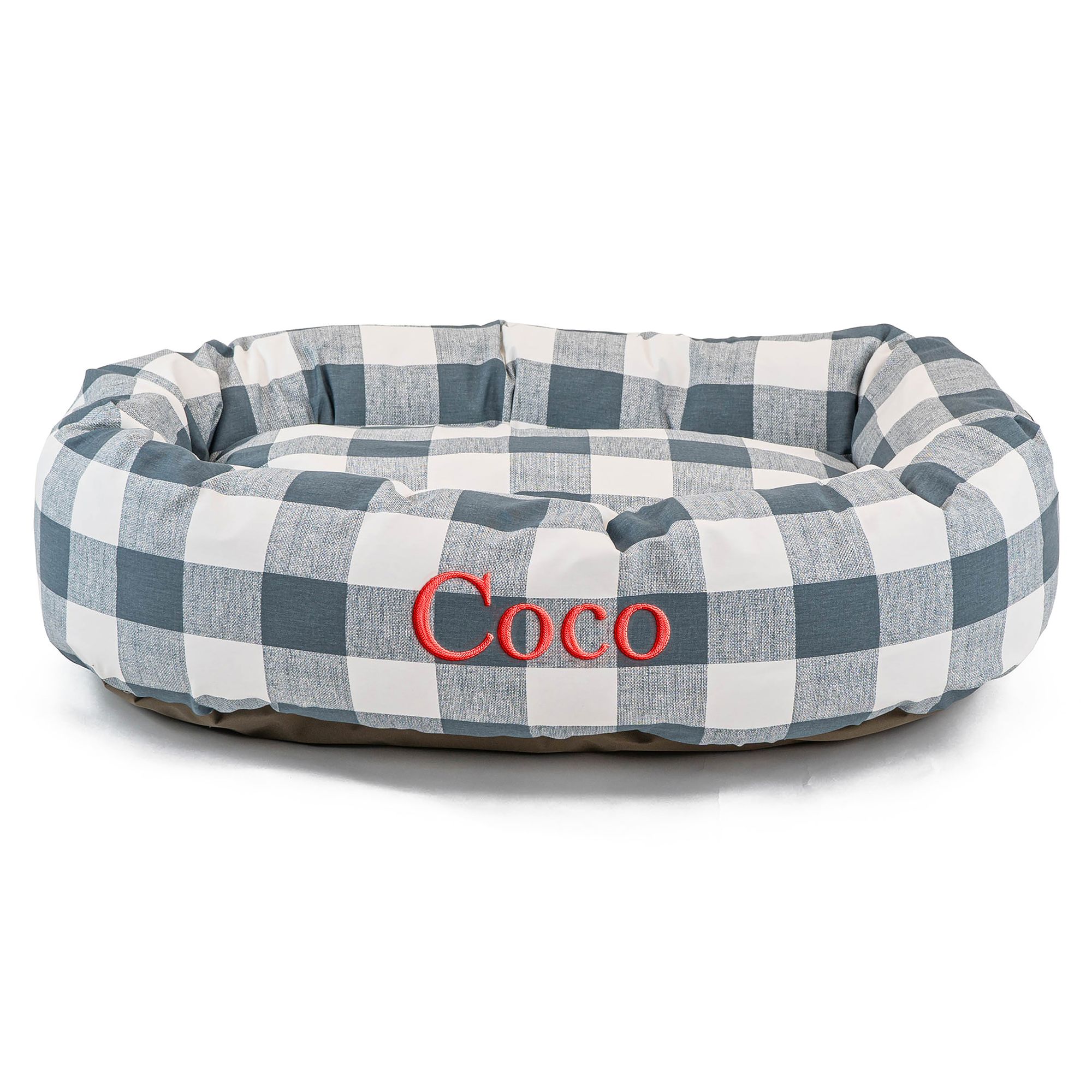 Majestic Pet Personalized Checkered Sherpa Bagel Cat & Dog Bed