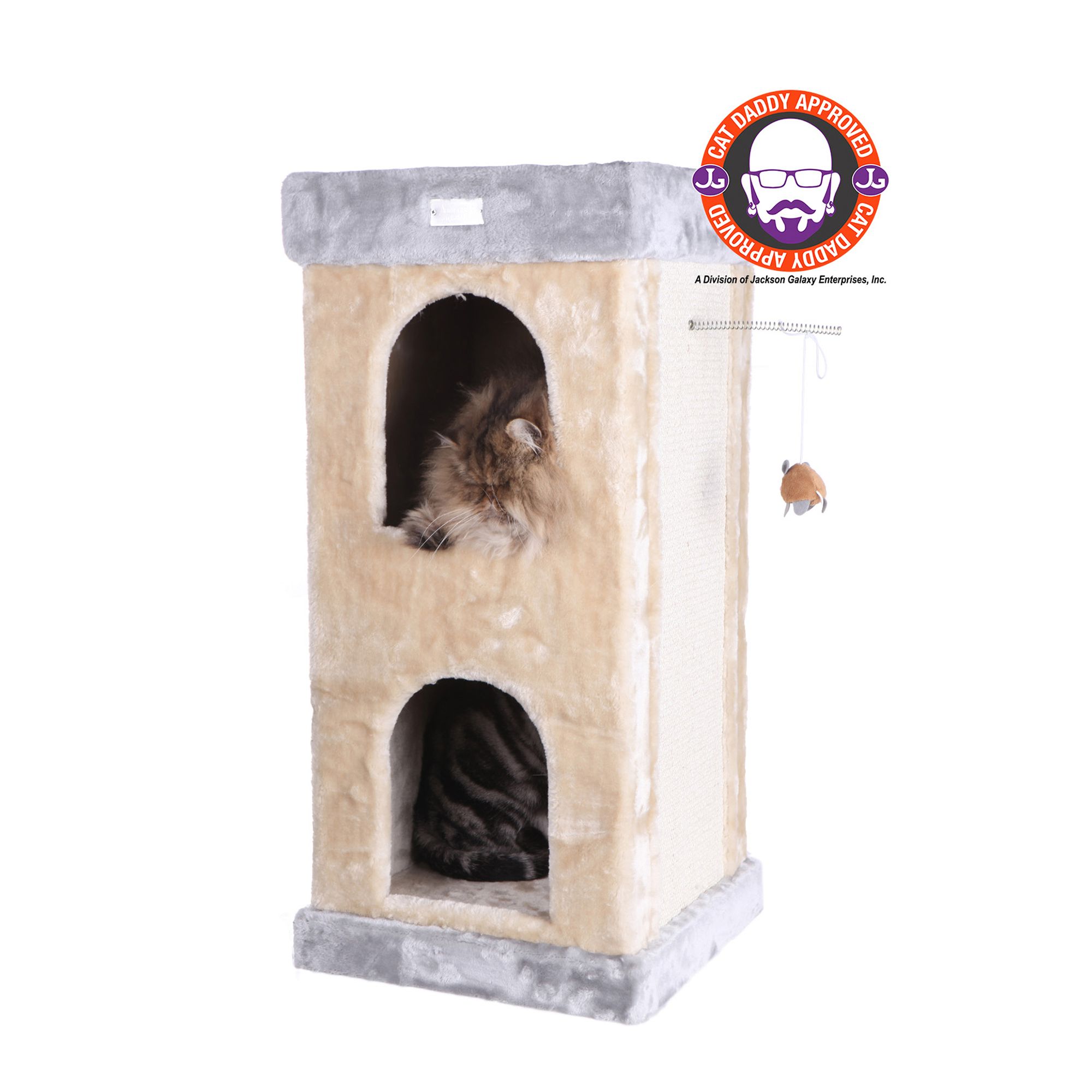 DESCRIPTIONThis Armarkat Premium Cat Tree is Cat Daddy Approved by noted cat behaviorist Jackson Galaxy. This tree has a perch and a playhouse and can accommodate multiple kitties, and has a pressed wood construction with a soft but durable carpet covering. Complete with a double base and sisal carpet on its sides, this khaki cat tree is easy to assemble with tools and step-by-step instructions.
