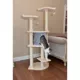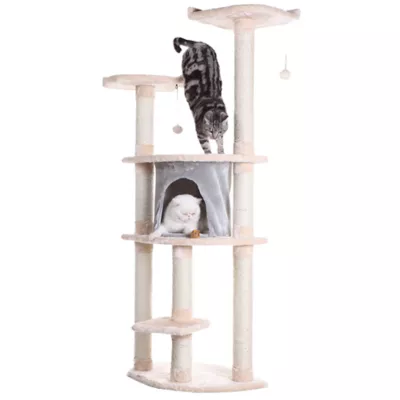 DESCRIPTIONThe Armarkat Cat Tree features soft-side playhouse and perches and is Cat Daddy Approved by noted cat behaviorist Jackson Galaxy. This tree is easy to assemble with step-by-step instructions, and is covered in blanched almond faux fur with a silver grey condo. In addition, the board material is pressed wood.