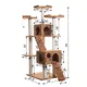 74-inch height Ochre Brown, with high density faux fur cover for feline's comfort and soft, coverings are permanently adhered to wood structures.3 nicely cushioned perches, 2 spacious playhouses, 10 sisal scratching posts, 2 running ramps, , several layer design, will provide a lot of lounging room and fun to your kitties. Well-constructed of 15mm plywood material, making it not only thicker but stronger.Dimensions: Base: 28 in x 24 in; Playhouse: 20 in (L) x 14 in (W) x 12 in (H) and 14 in (L) x 14 in (W) x 12 in (H); Perch: 14 in x 14 inMax Holding Weight: 60 lbs.180 Days Manufacturer Warranty.