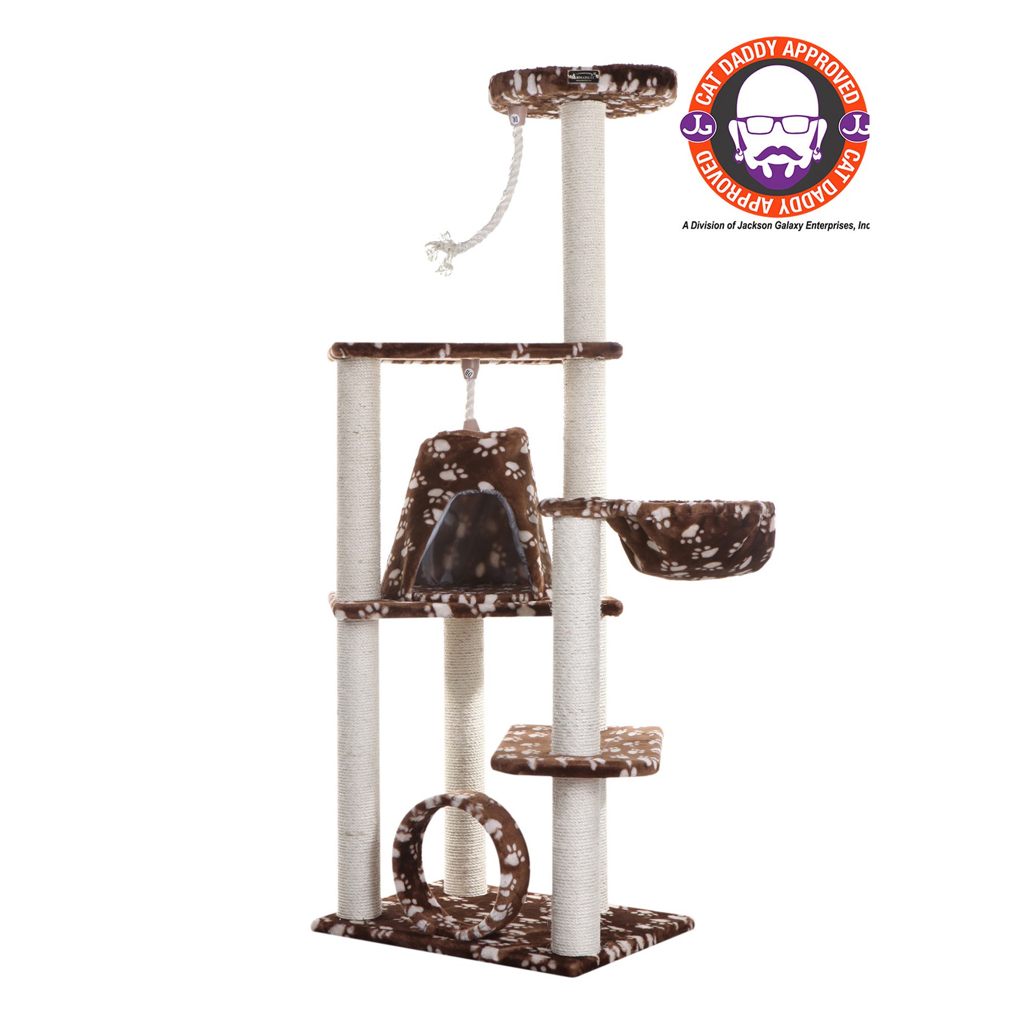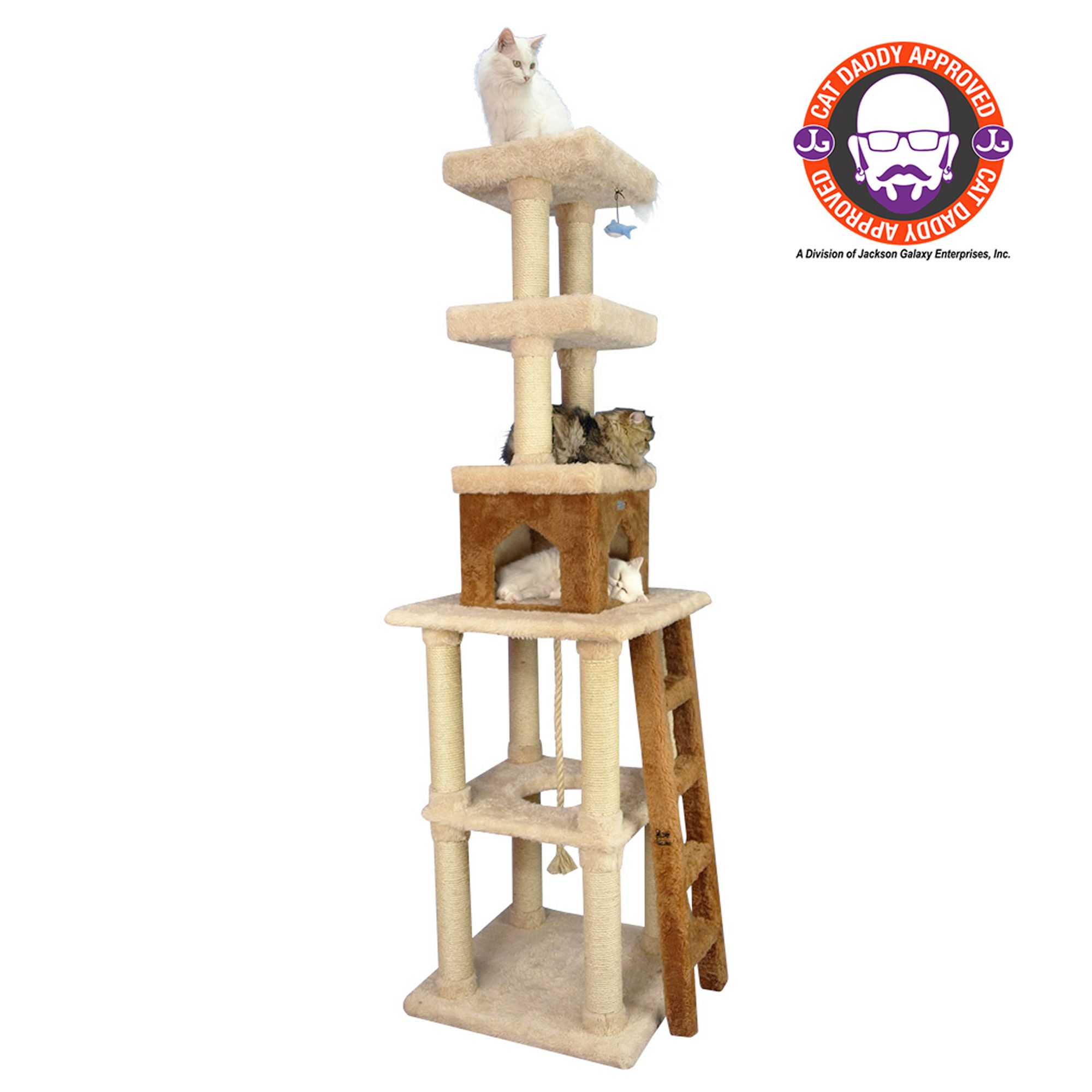 This Armarkat Premium Cat Tree is Cat Daddy Approved by noted cat behaviorist Jackson Galaxy. Your cats can climb to their hearts content with this six-level tree, with features that include a top perch, rope ladder, condo, basket, and teepee. It is also covered in ultra-soft faux fleece with a pressed wood base, and comes with a goldenrod colored cover and a doubled base. Assembly is easy with tools and step-by-step instructions.