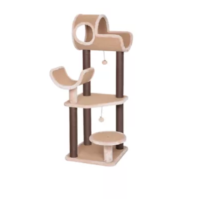 The Catry 5-Level Beige Cat Tower is the ideal playground for your active pet. This beautiful cat tower features multiple paper rope scratching posts that help in keeping your cat's claws trimmed and healthy. Our Cat Tower design includes a top perch and multiple lower perches covered in soft carpet material; the perfect cozy place for your cat to take a nap or rest. This interactive cat tree also includes toys for your cat to enjoy during hours of playtime. This lovely brown and beige design will be the perfect match for your home decor. All instructions and tools are included for an easy assemble process. Our brand's mission is to provide diverse product lines to meet the dynamic and ever-changing needs of our customers around the world. Our products' mission is to provide great quality products that meet the needs of our customers and their pets.