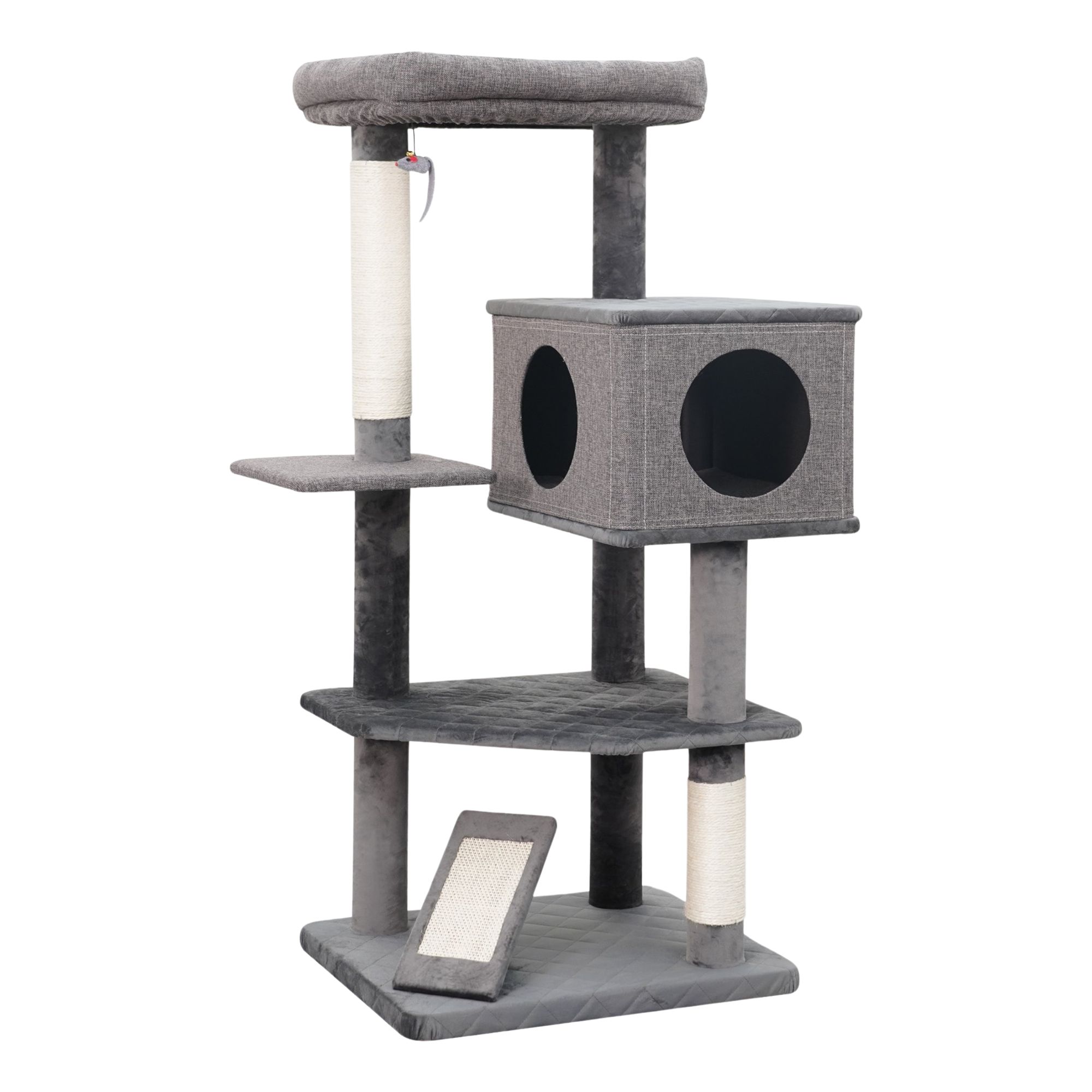 Includes: 1 cat condo, 1 cat perch, 2 scratching posts