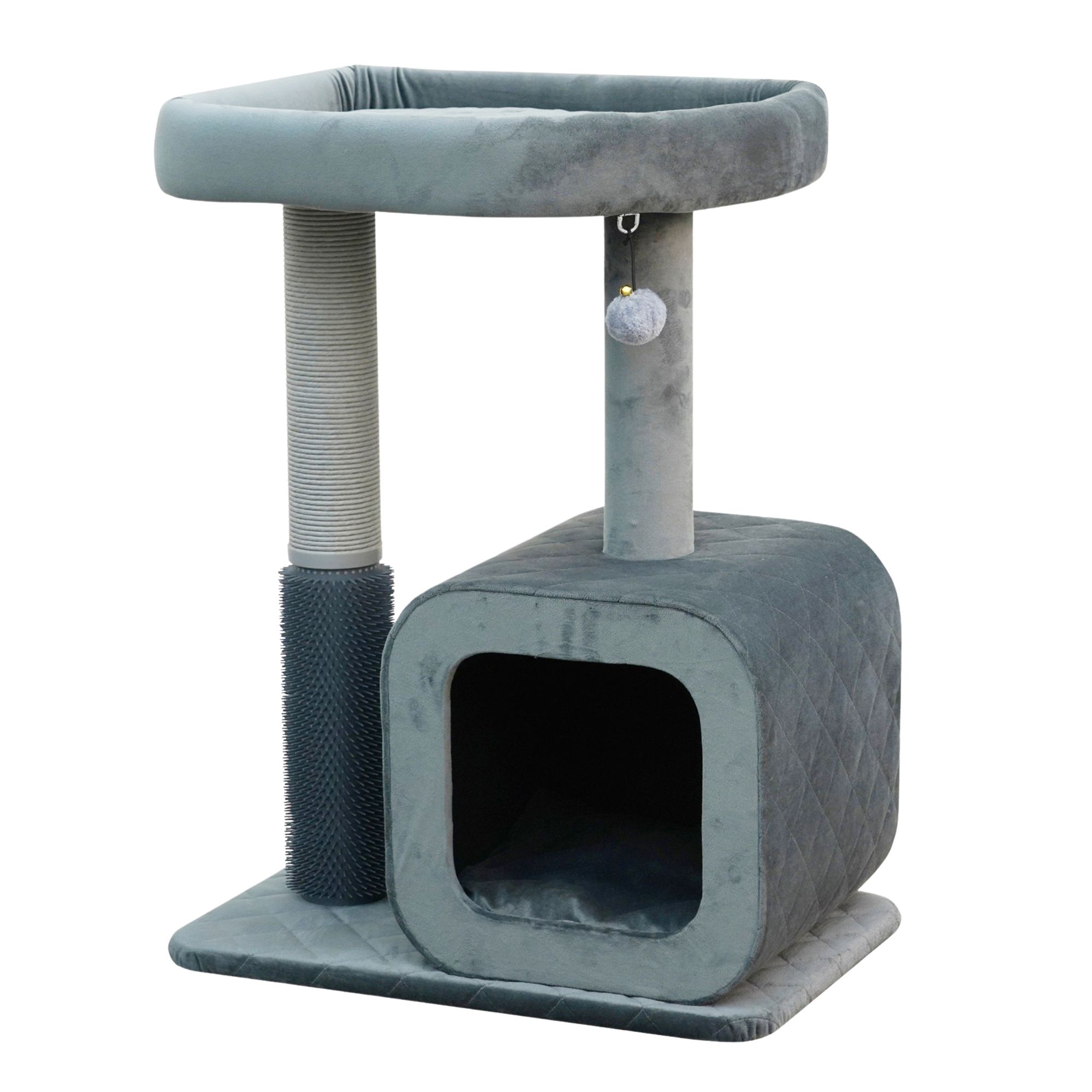 Includes: 1 cat condo, 1 padded perches, 7 scratching posts, 1 attached scratching board
