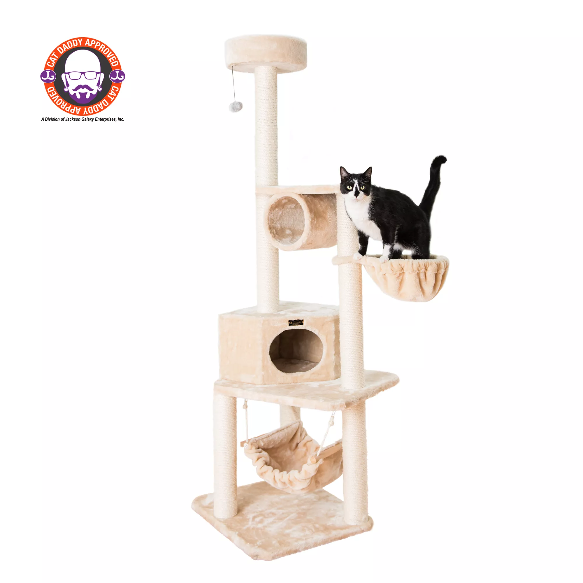 Armarkat 65-in Faux Fur Hammock, Tent House & Real Wood Cat Furniture Condo, Beige