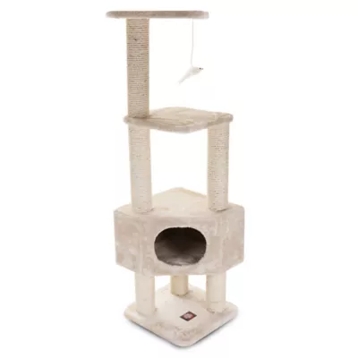 The Majestic Pet Products 52 inch Bungalow Cat Tree is covered in Faux Sheepskin with Sisal Rope wrapped posts that will withstand the toughest claws. This beautiful residence features a main entry that is topped by a spacious main residence, leading up to dual perches high above to relax for a mid-afternoon siesta or just chill out to see what's going on with the family. Our Bungalow Cat Tree assembles in minutes with simple step by step instructions and tools provided.