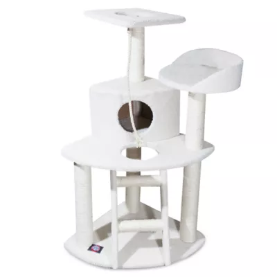 The Majestic Pet Products 48 inch Casita Cat Tree is covered in Faux Sheepskin with Sisal Rope wrapped posts that will withstand the toughest claws. This beautiful playground features a second story residence, a ladder, two perches, a rope toy, and a dangly mouse. Our Casita Cat Tree assembles in minutes with simple step by step instructions and tools provided.