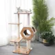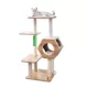 The PetPals Wagon Style Cat Tree is a minimalistic 5-level multi-activity cat tower your feline friend will love. Made of high-quality laminated wood and plush white fabric. It features a hexagon-shaped wooden cat condo and two removable plush cushions, to provide your cat with maximum comfort while napping. This modern cat tree includes three 100% natural sisal rope scratching posts to help keep your cat's nails trimmed and healthy. It also features two pom-pom toys to keep your kitty entertained. Each perch is made of laminated wood providing durability, and stability all while keeping your cat active.