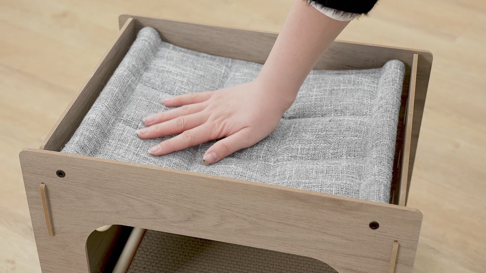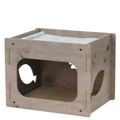 PetPals Jodie is our minimalist cat playhouse with cute fish details. Your cat will love this multi-functional house, made of laminated board, with a replaceable scratcher board inside and cushioned linen bed on top. Jodie will be a great addition to your home decor and the best part is you can replace the scratching board when needed. This contemporary cat house will be a fun addition to your home.