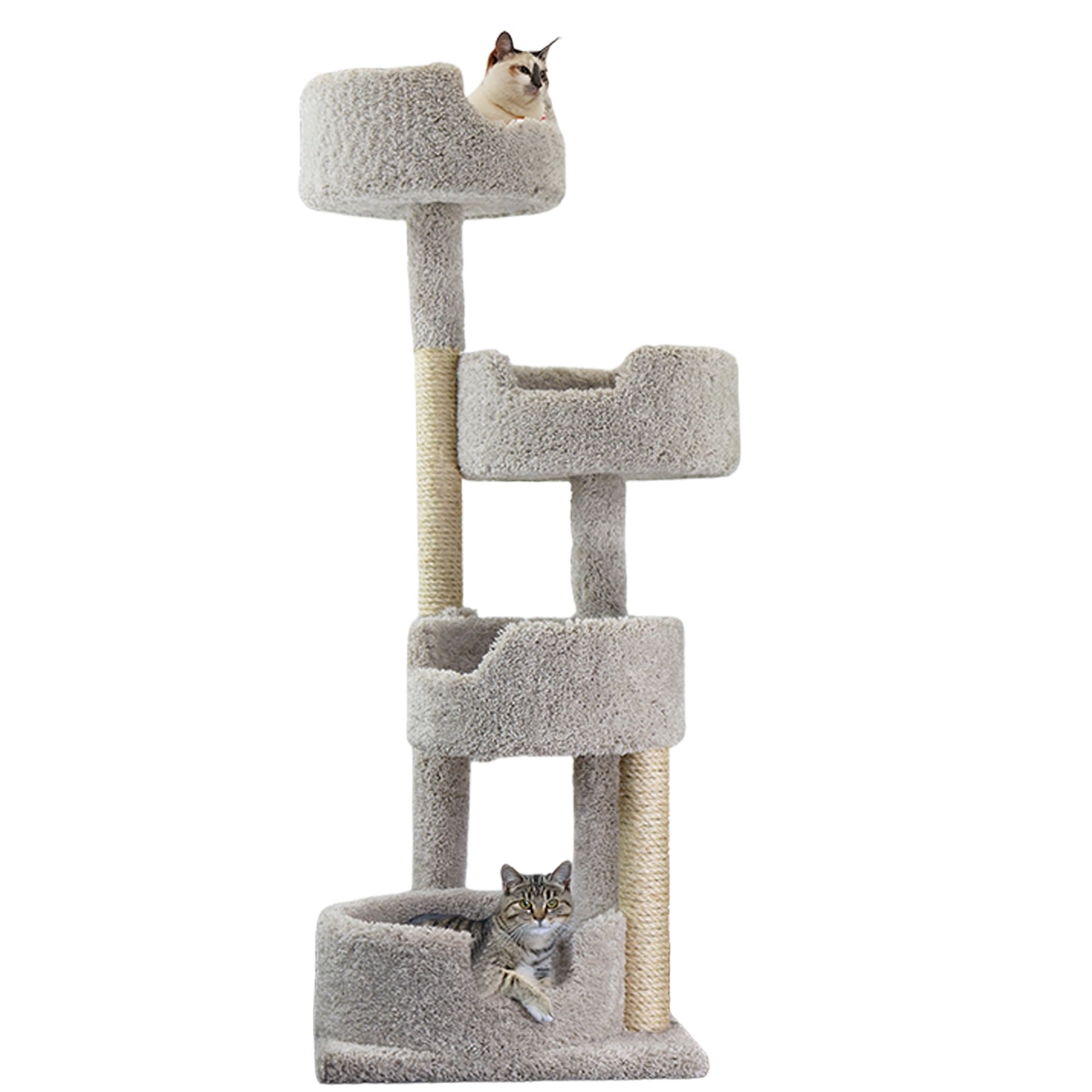 This PetPals cat tower for large cats is suitable for multi-sized cats. Due to its multi-step layout, your little kittens can climb up like a pro on this tall cat tree with elevated cat beds. This cat tree tower is a thoughtful addition to your home whether you have a shy cat, are having trouble with multiple cats, or simply want to provide your cat with an enriching environment.