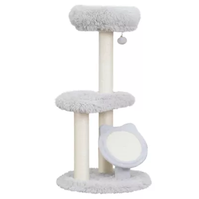 Petpals Rockview is our cute and cozy 2-level cat tree your kitty will love. Rockview features 3 natural sisal scratching posts and a cute cat-shaped sisal scratching mat. Includes a faux fur shag perch and bed for a soft nap time. There is even a pom pom toy for added fun. PetPals medium-sized cat tree is the perfect addition to any home decor and a great size for any room.