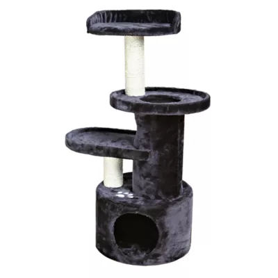 TRIXIE's Oviedo Cat Tree will provide endless opportunities for cats to play, explore, scratch or just relax. Felines can sharpen their claws on two scratching posts saving your furniture and carpet from kitty ravages, while offering your frisky friend a healthy outlet for their scratching instincts. All posts are covered in durable sisal. If a nap or a place to hide is in order, your cat can crawl inside the kitty condo or tunnel. Both are covered with plush; inside and out, making it the perfect retreat. Is she feeling a little spunky? She can jump, climb or perch atop one of the three plush platforms and lie in wait for unsuspecting prey or just enjoy the view. Multiple ways in and out so your feline can sneak in one way and pop out another for added adventure. The top platform even features a supportive backrest and plush padding for extra comfort. The subtle earth tones are easy to integrate into your home décor.