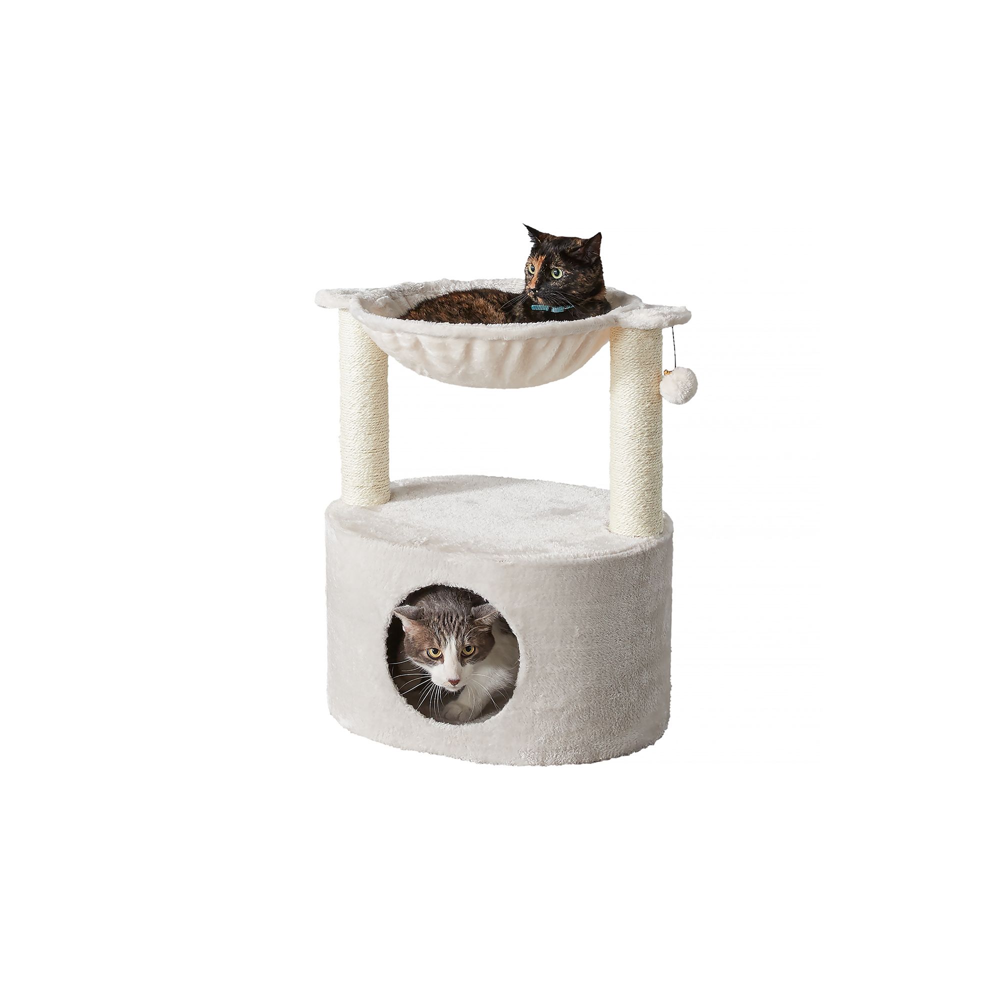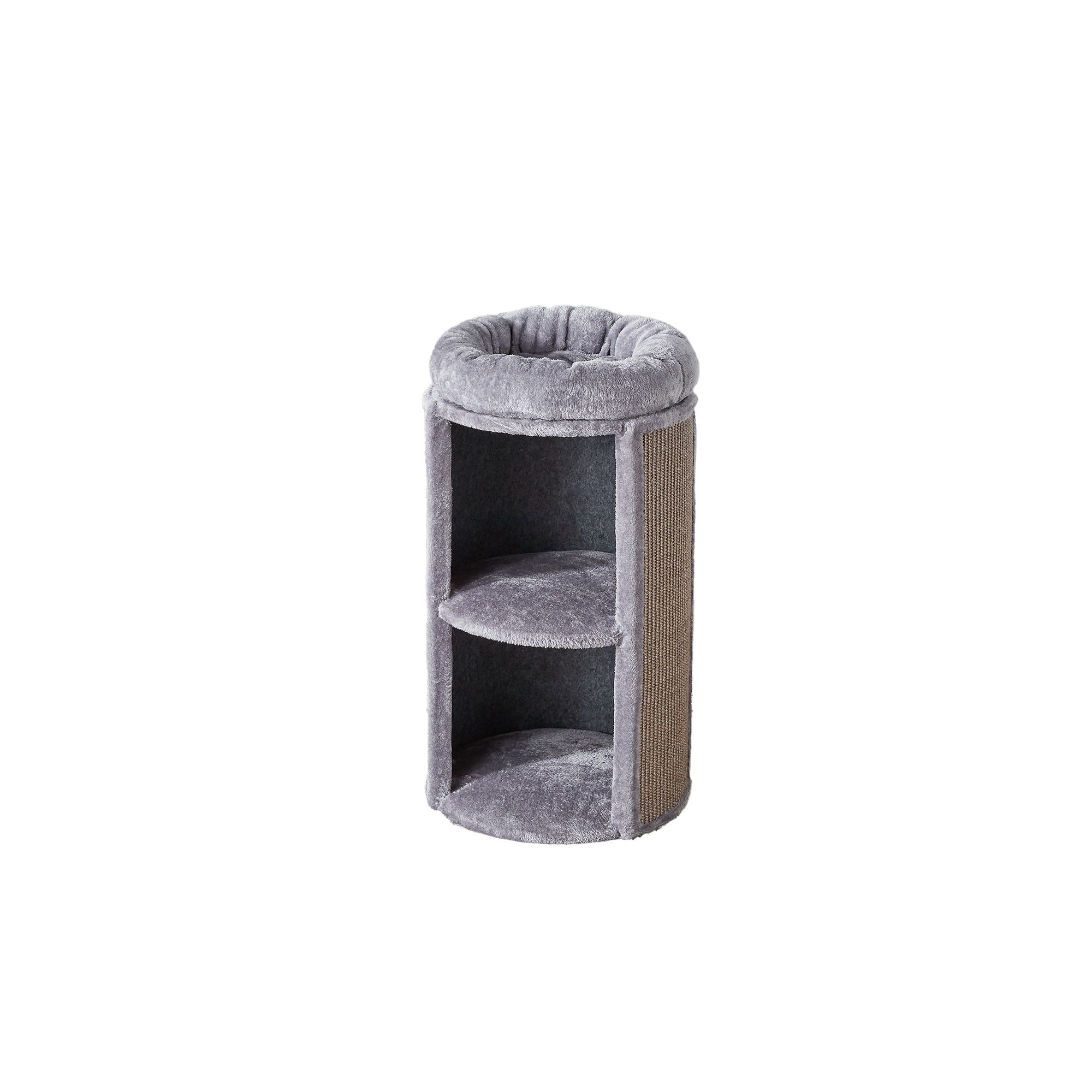 This Two by Two Cypress large 4-level 41-inch tall cat tree offers multiple places for your cat to land, platforms at different heights and angles, and three scratching columns. It features durable construction and easy assembly, and is a great choice for multiple cats.