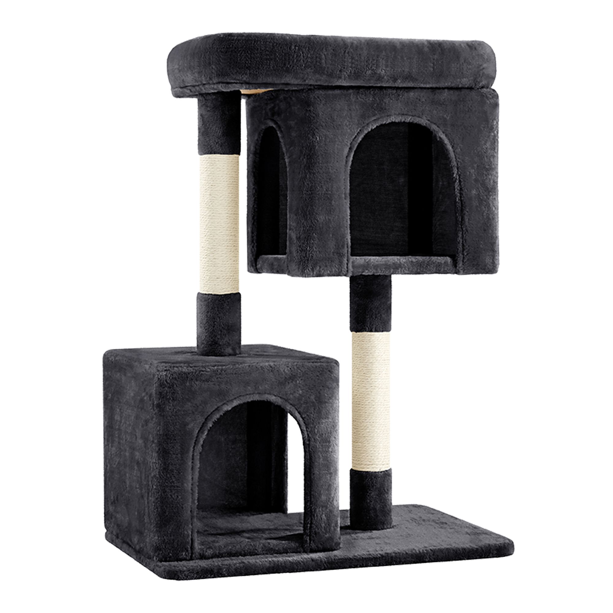 Description and Overview: Bring your feline friends ultimate comfort and fun with this 2–level cat tree. Our cat tree features a plush wide perch, an elevated condo, and two scratching posts, which provide a piece of multifunctional cat furniture for your loved pets. Crafted of durable materials and built in a solid structure, this cat tree will be a reliable playground for long–term use. The whole stand is covered with soft and skin–friendly plush fabric, which brings extra comfort and keeps them warm all the time. With its compact size, modern design, and neutral colors, this cat tower will easily blend into different home decors and is ideal for apartments and small spaces.