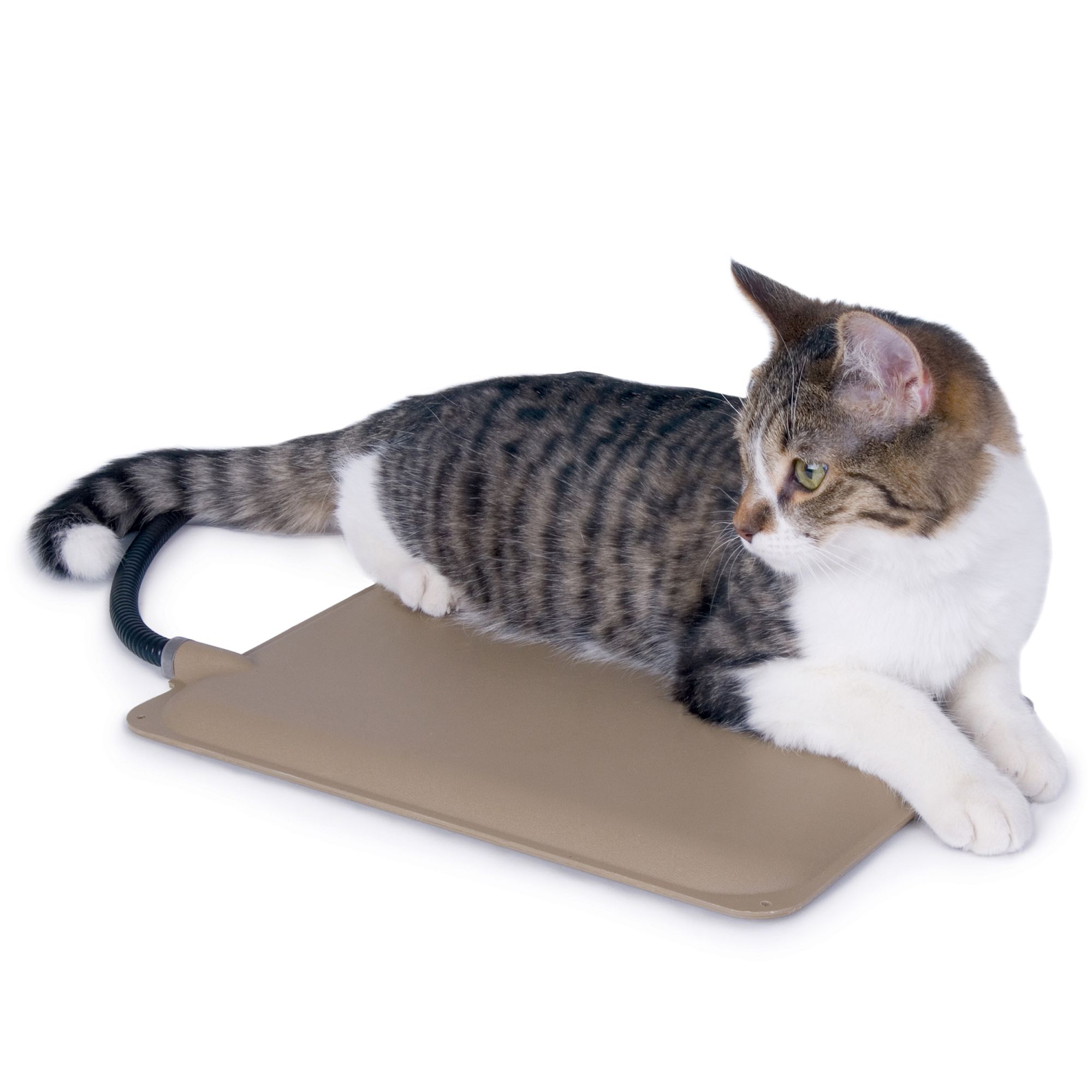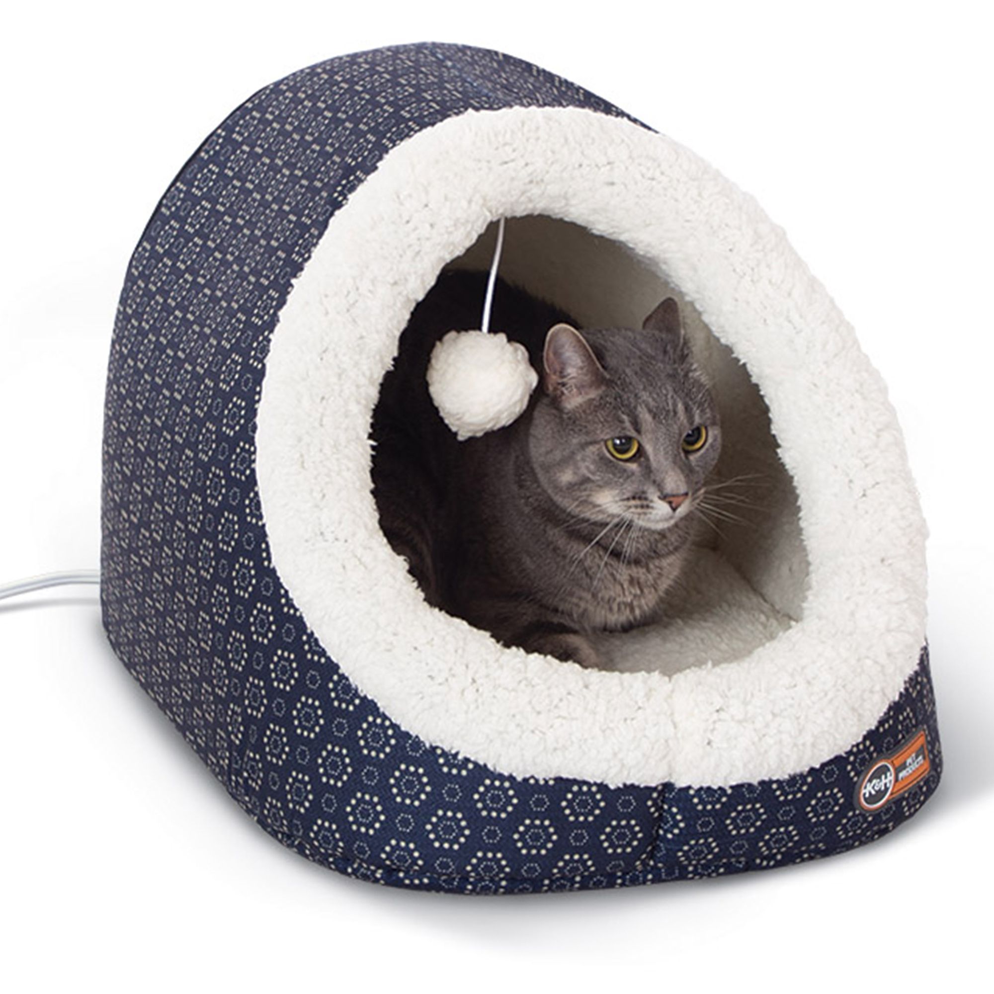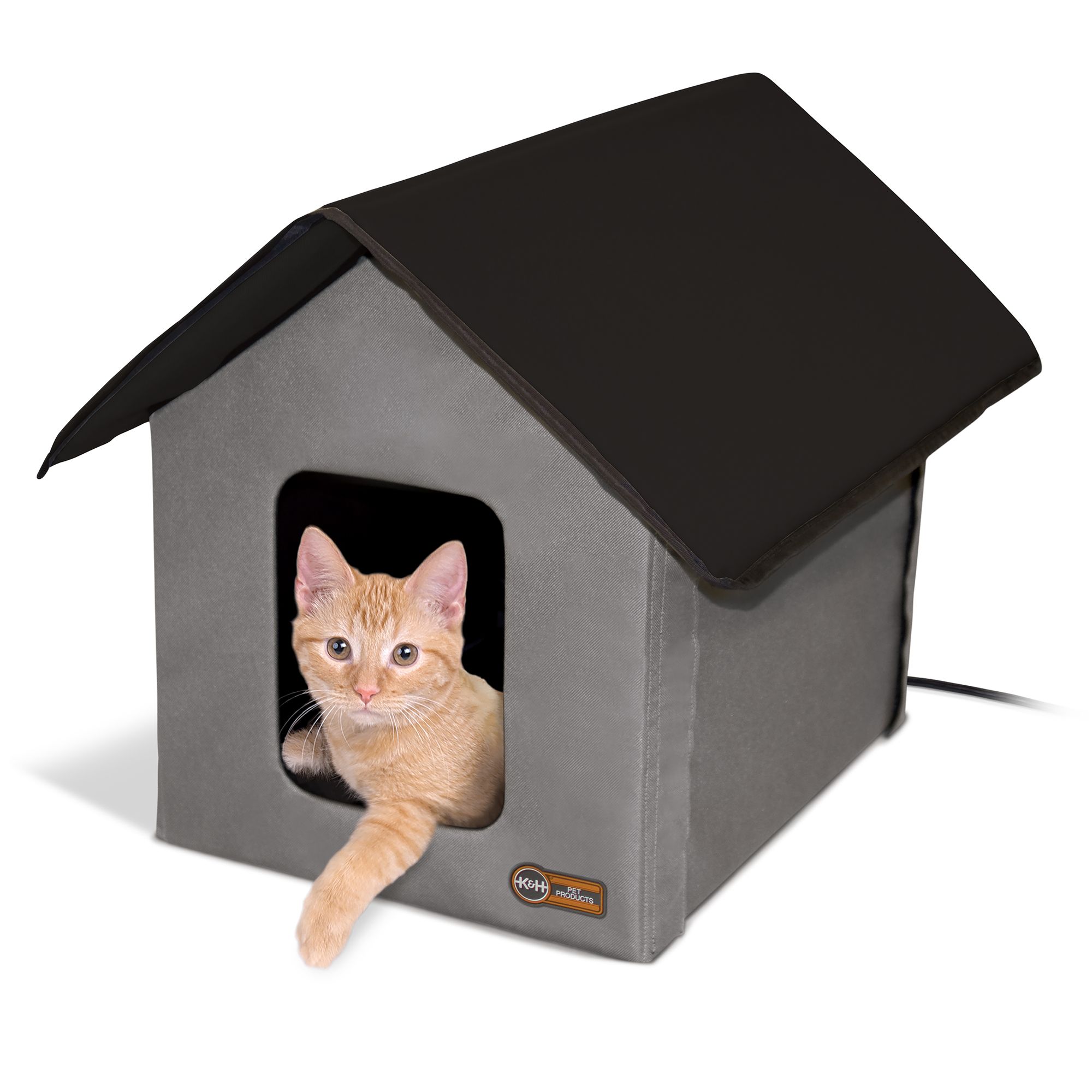 The K&H Outdoor Kitty House is available in both heated and unheated models and is the original Outdoor Heated Kitty House. K&H products are made with high-quality materials for your pet's comfort and your family's safety. This heated house is excellent for use in barns, garages, porches, and anywhere your indoor/outdoor cat need additional warmth and protection. The included 20 watt MET Safety Listed Lectro-Soft Indoor/Outdoor Heated Bed inside the K&H Outdoor Heated Kitty House keeps your kitties warm all winter long, even in sub-zero temperatures. The K&H Lectro-Soft is thermostatically controlled by an internal preset thermostat to safely keep your pets warm. The K&H Outdoor Heated Kitty Houses are made with heavy denier polyester that makes it water/weather resistant. The walls and roof are insulated to protect your kitty from the harmful elements of winter. The roof of the K&H Outdoor Heated Kitty House hangs over the 2 doors to keep cats warm, safeand dry. The K&H Outdoor Heated Kitty House features two exits with removable plastic flaps so pets cannot be trapped by predators and yet still have sufficient protection. It's easy to assemble and no tools are required. Product includes manufacturer's one-year limited warranty. The heated floor included with this product has been rigorously tested and is certified by MET Laboratories to exceed USA and Canadian electrical safety standards.