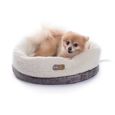 Pets will love to cozy up in the Thermo-Snuggle Cup Bomber by K&H. Its soft fleece and walls will surround any pet with snuggle comfort and security. Great for animals who love to nest while they sleep. Removable 4 watt heater adds warmth to take the chill off on cold days. Energy-efficient 4-watt heater included. Machine washable, cold water/gentle cycle and can be line dried or dried on the no-heat cycle. Met safety listed - K&H products are rigorously tested and are certified by met laboratories to exceed USA and Canadian electrical safety standards. Don't be fooled by inferior electrical products that have not been tested and certified by an accredited nationally recognized testing laboratory. Backed by the K&H Pet Products one year warranty. Ensure you receive authentic K&H Pet Products merchandise, purchase products only from authorized dealers. For indoor household use only. Testing Your new K&H heated pet bed - you'll notice that your K&H indoor heated bed may not feel warm to the touch when your pet is not on the bed. That is normal!! K&H indoor heated beds are designed to remain 10-15 degrees above ambient air temperature when your pet is not in the bed. These innovative heated beds only warm to optimal temperature only when your pet is lying in the bed. You can test your k and h heated bed by placing a pillow or book on the sleeping surface of the bed. After about 15 minutes, feel under the pillow or book. It will feel warm, not hot. This is the gentle warmth your pet feels when enjoying their K&H heated pet bed.
