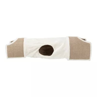 The TRIXIE Cuddly Condos and Tunnel are the perfect solution for every cat owner. A tunnel connects the two plush-lined condos with a peek-a-boo cutout for a great game of Cat and Mouse. The soft-sided tunnel creates a small, dark, and safe space so they can stalk their prey. Cat toys dangle from a string for an added adventure. The condos' exteriors are covered in durable, natural sisal providing the ideal scratching surface instead of your furniture. Our unique design feature is great for when playtime is over, you nestle the condos inside each other for easy storage or easy travel for the on-the-go cat!