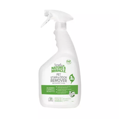 Nature's Miracle pet stain and odor removers have been a trusted brand for pet mess cleanup for 40 years. Their stain and odor removers, virus disinfectants, training aids, litter and waste management and grooming products offer solutions for life with pets, from everyday messes to the toughest cleanup jobs. Simply Nature's Miracle products, their newest lineup of cleaning solutions, features formulas made with 86% plant-based surfactants and fragrances made with essential oils that mindful consumers can feel good about using in their homes. Simply Nature's Miracle Pet Stain and Odor Remover is made without parabens, phthalates, phosphates or added dyes. The bio-enzymatic formula is tough on pet messes, such as urine, feces, vomit, drool and other organic stains and odors, but not on your floor, carpet or furniture*. Plus, the Odor Capture 360 formula controls pet odors and freshens with essential oils for a pleasant scent. Simply Nature's Miracle Pet Stain and Odor Remover is safe for pets and home when used and stored as directed. Even better, our bottle is made with 25% Post-Consumer Recycled material.
