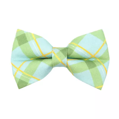 This adorable Made By Cleo Carmel Mint Plaid Pet Bow Tie is the perfect accessory for stylish cats and dapper little dogs. You won't be able to stop snapping photos. This bow tie is designed to slide onto any small pet collar (up to 3/4 inches wide) via the elastic loop on the back. Collar not included. The matching cat collar and slide-on bandana are also available for purchase separately. All products are handmade.