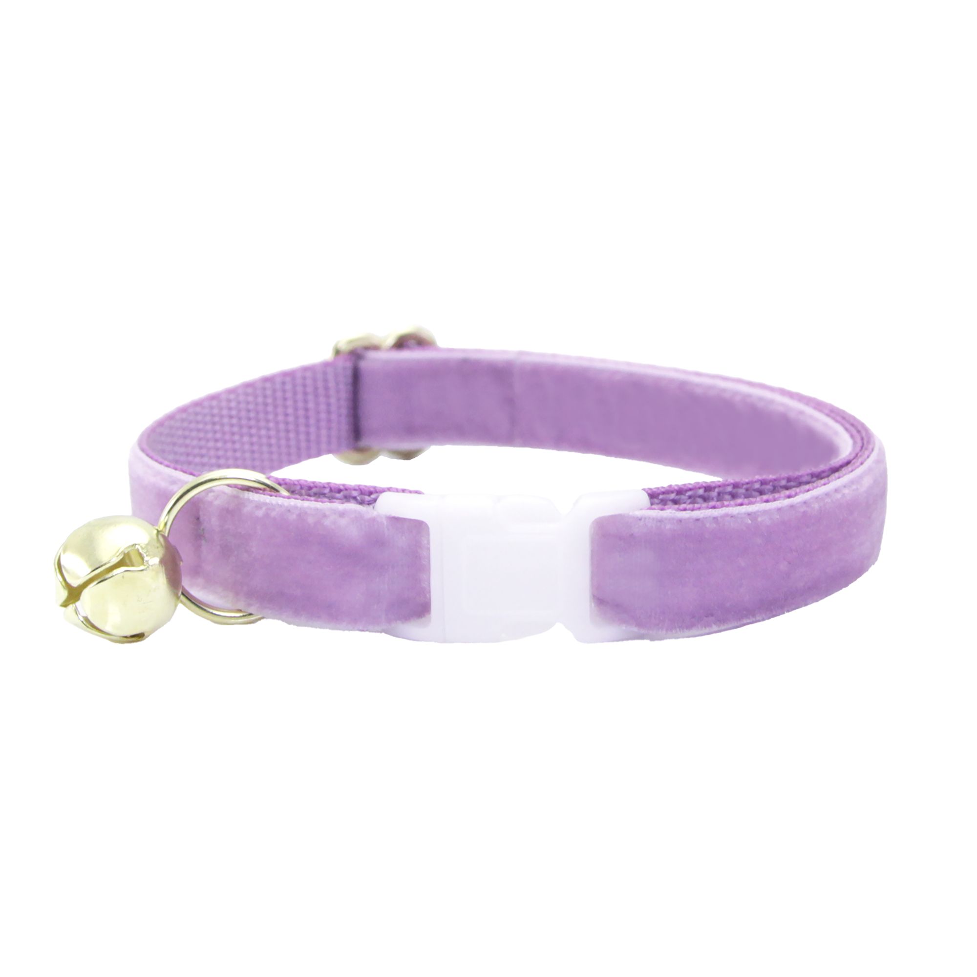 This stylish premium-quality Made by Cleo Moonlight Purple Moon & Stars Breakaway Cat Collar from feels as good as it looks. Your kitty will love wearing this comfortable, durable collar and will be basking in all the extra attention. This collar features a breakaway safety buckle clasp, which allows the collar to auto-release if it gets caught while adventuring or playing (not for use with leashes). A removable bell is included via the attached split ring. The adjustable length fits average adult cats and larger kittens with neck sizes 8-13 inches in diameter. Matching bow tie and slide-on bandana accessories are also available for purchase separately. All products are handmade.