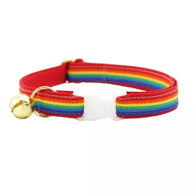 This stylish premium-quality Made by Cleo Retro Rainbow Pride Breakaway Cat Collar from feels as good as it looks. Your kitty will love wearing this comfortable, durable collar and will be basking in all the extra attention. This collar features a breakaway safety buckle clasp, which allows the collar to auto-release if it gets caught while adventuring or playing (not for use with leashes). A removable bell is included via the attached split ring. The adjustable length fits average adult cats and larger kittens with neck sizes 8-13 inches in diameter. Matching bow tie and slide-on bandana accessories are also available for purchase separately. All products are handmade.