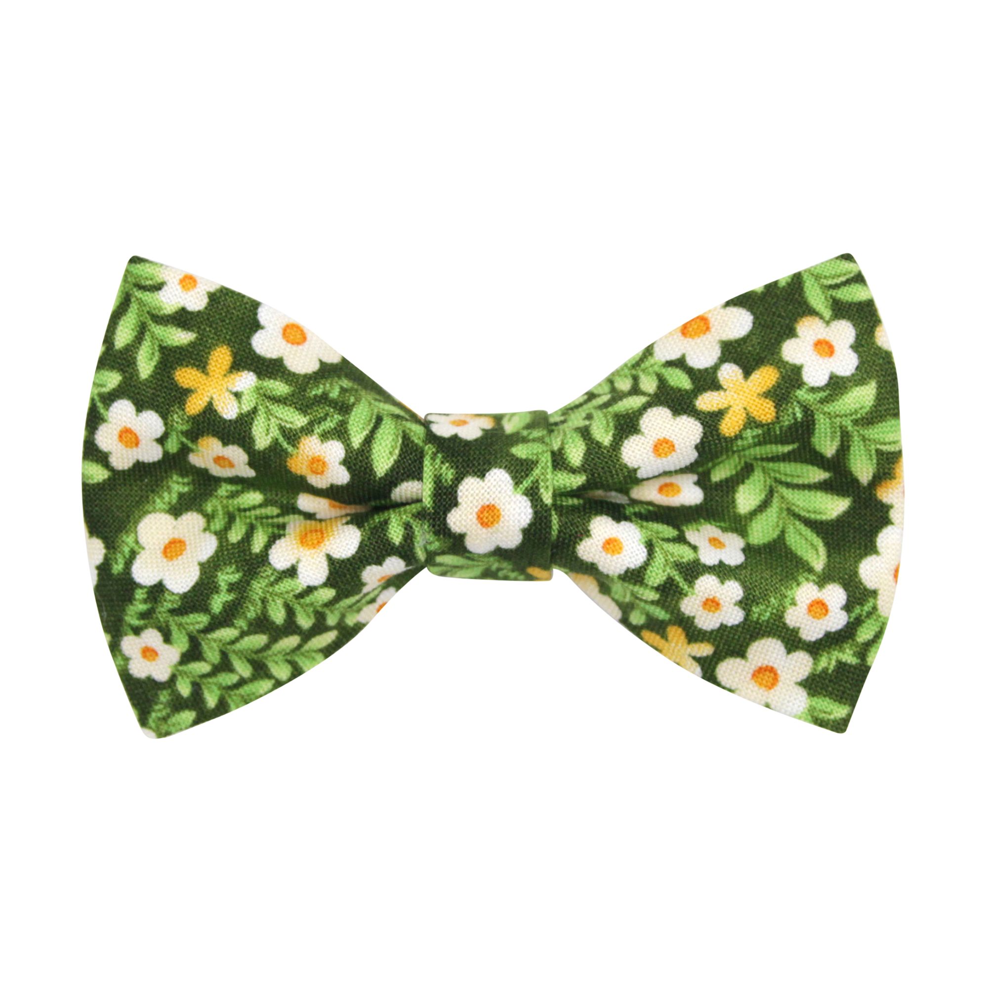 This adorable Made By Cleo Velvet Leaf Green Pet Bow Tie is the perfect accessory for stylish cats and dapper little dogs. You won't be able to stop snapping photos. This bow tie is designed to slide onto any small pet collar (up to 3/4 inches wide) via the elastic loop on the back. Collar not included. The matching cat collar and slide-on bandana are also available for purchase separately. All products are handmade.