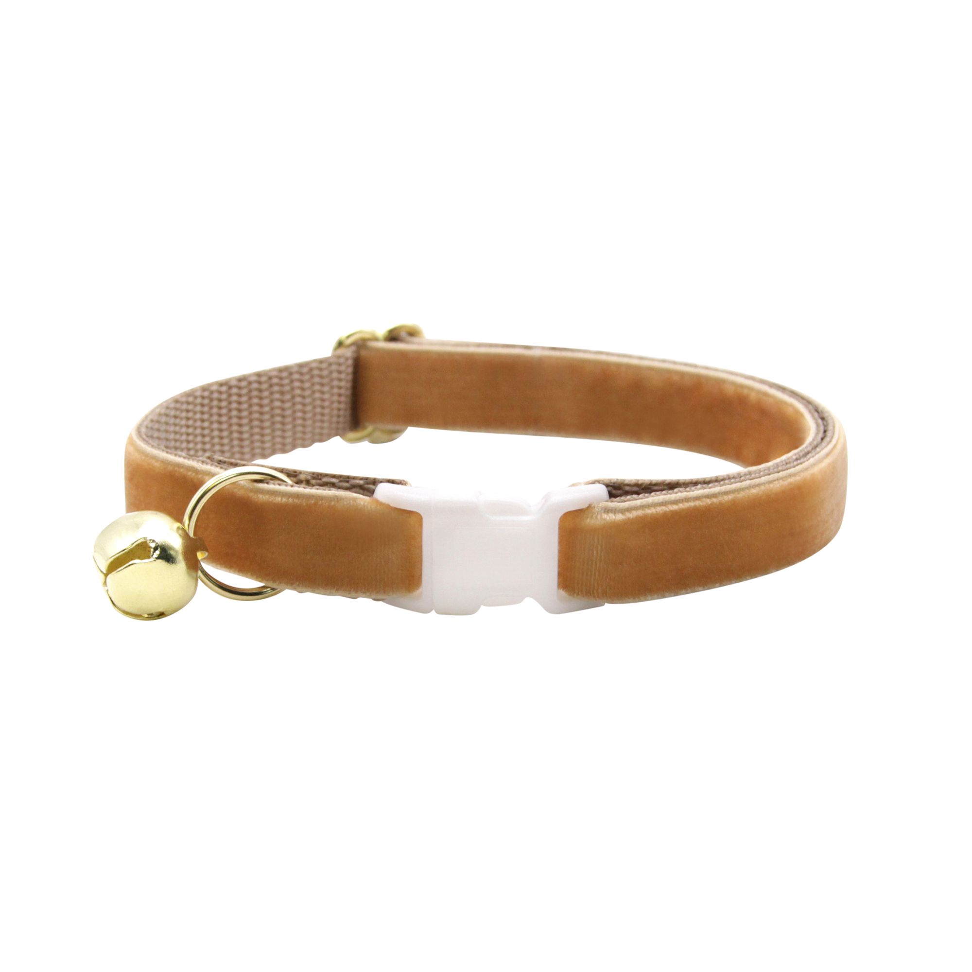 This stylish premium-quality cat collar from Made By Cleo feels as good as it looks. Your kitty will love wearing this comfortable, durable collar and will be basking in all the extra attention! This collar features a breakaway safety buckle clasp, which allows the collar to auto-release if it gets caught while adventuring or playing (not for use with leashes). A removable bell is included via the attached split ring. The adjustable length fits average adult cats and larger kittens with neck sizes 8-13 inches in diameter. Matching bow tie and slide-on bandana accessories are also available for purchase separately